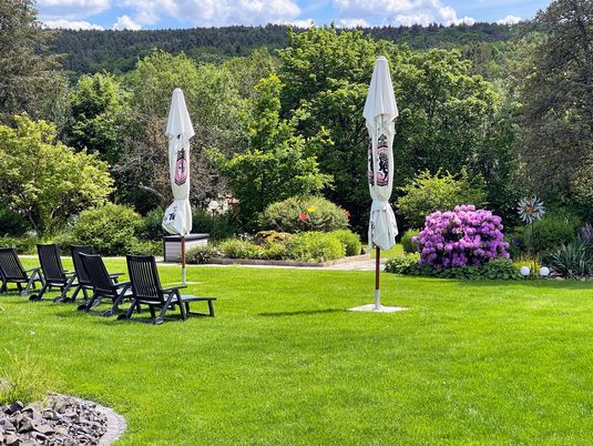 Eingebettet in eine weitläufige, liebevoll gepflegte Gartenanlage finden Sie Raum für Ruhe und Erholung - ob mit einem guten Buch im Liegestuhl oder beim Sonnenbaden im Grünen.